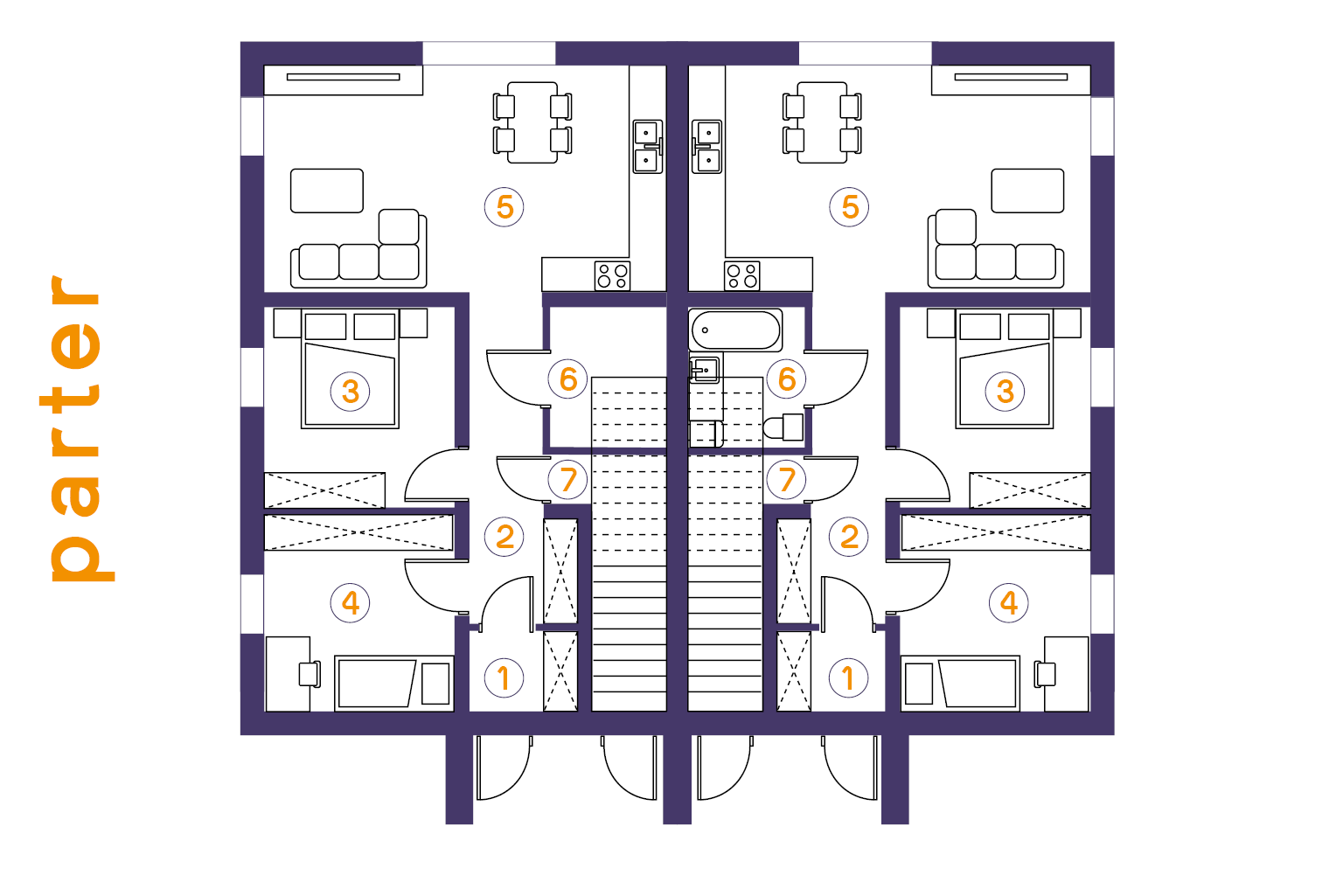 Mieszkanie na parterze (63,5 m2) składa się z: